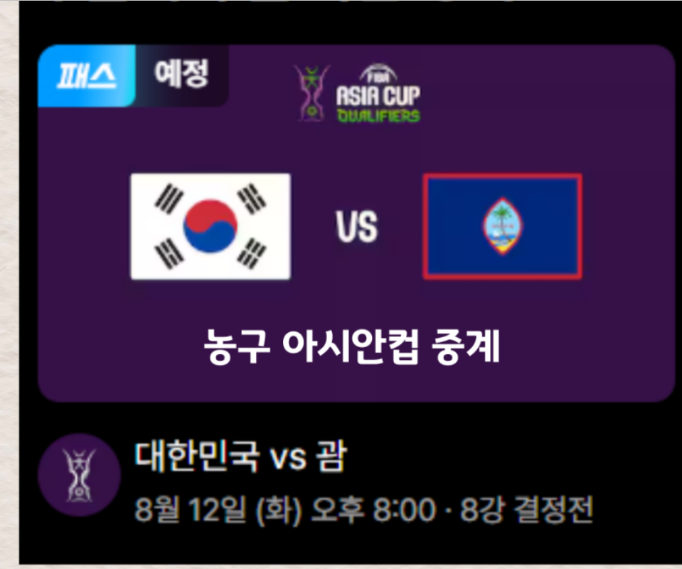 2025년 8월 12일(화) 저녁 8시, 한국은 괌과 단판 승부를 벌입니다.